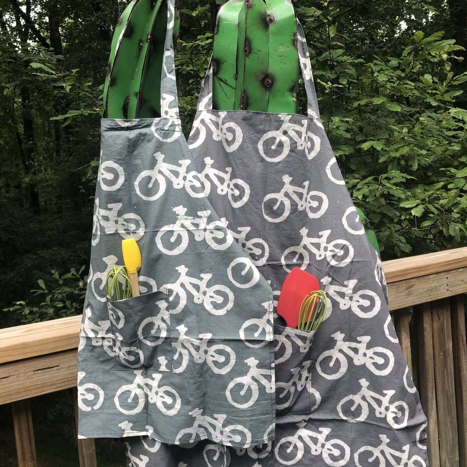One style is made out of flour sacks, complete with a bib for full coverage, one pocket, and plenty of space the wipe your hands on. WAS $36 NOW $30