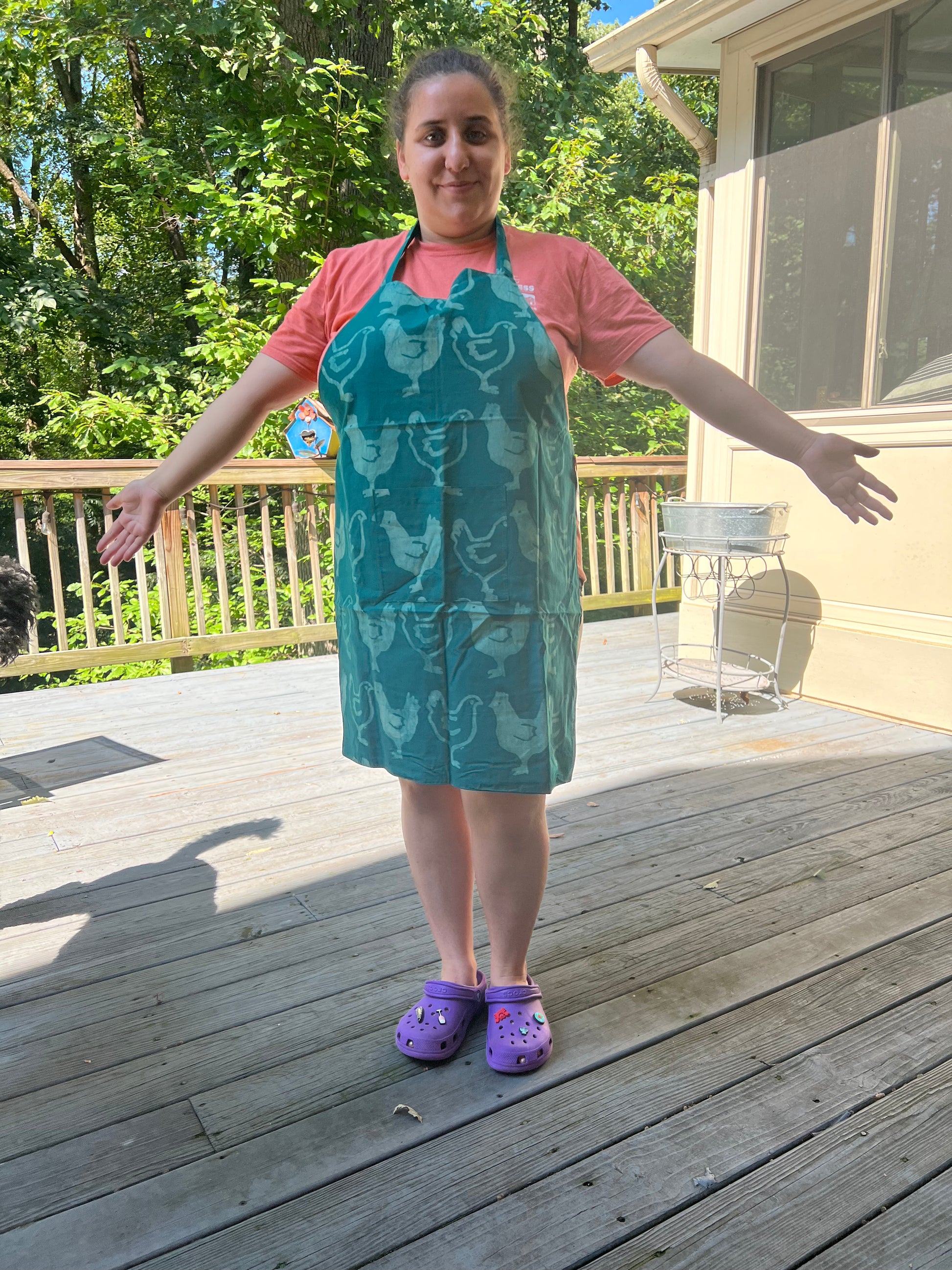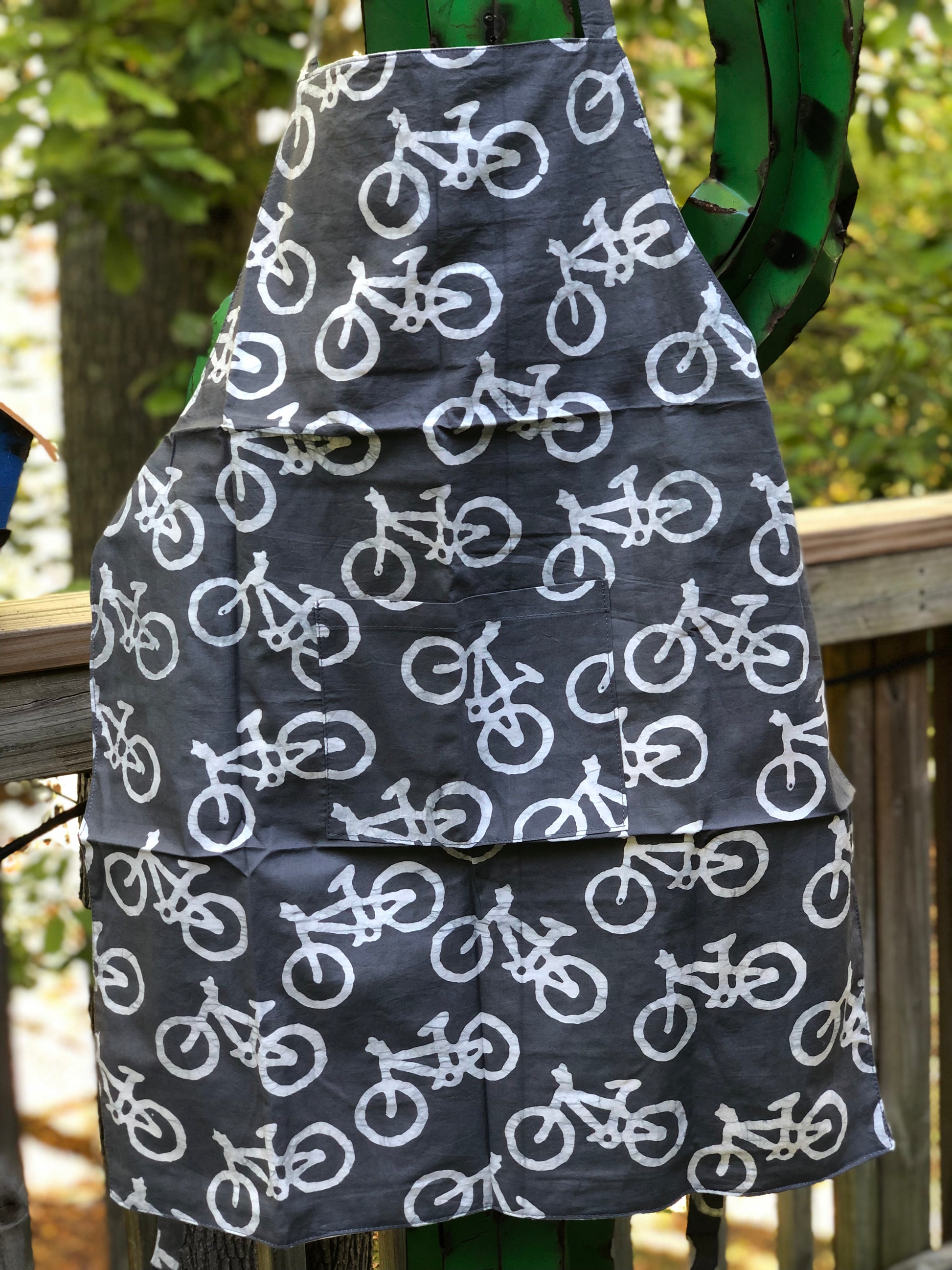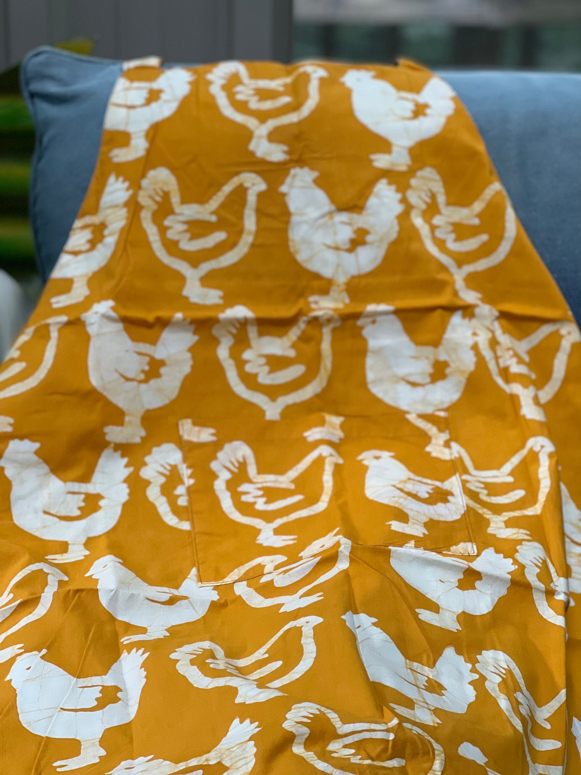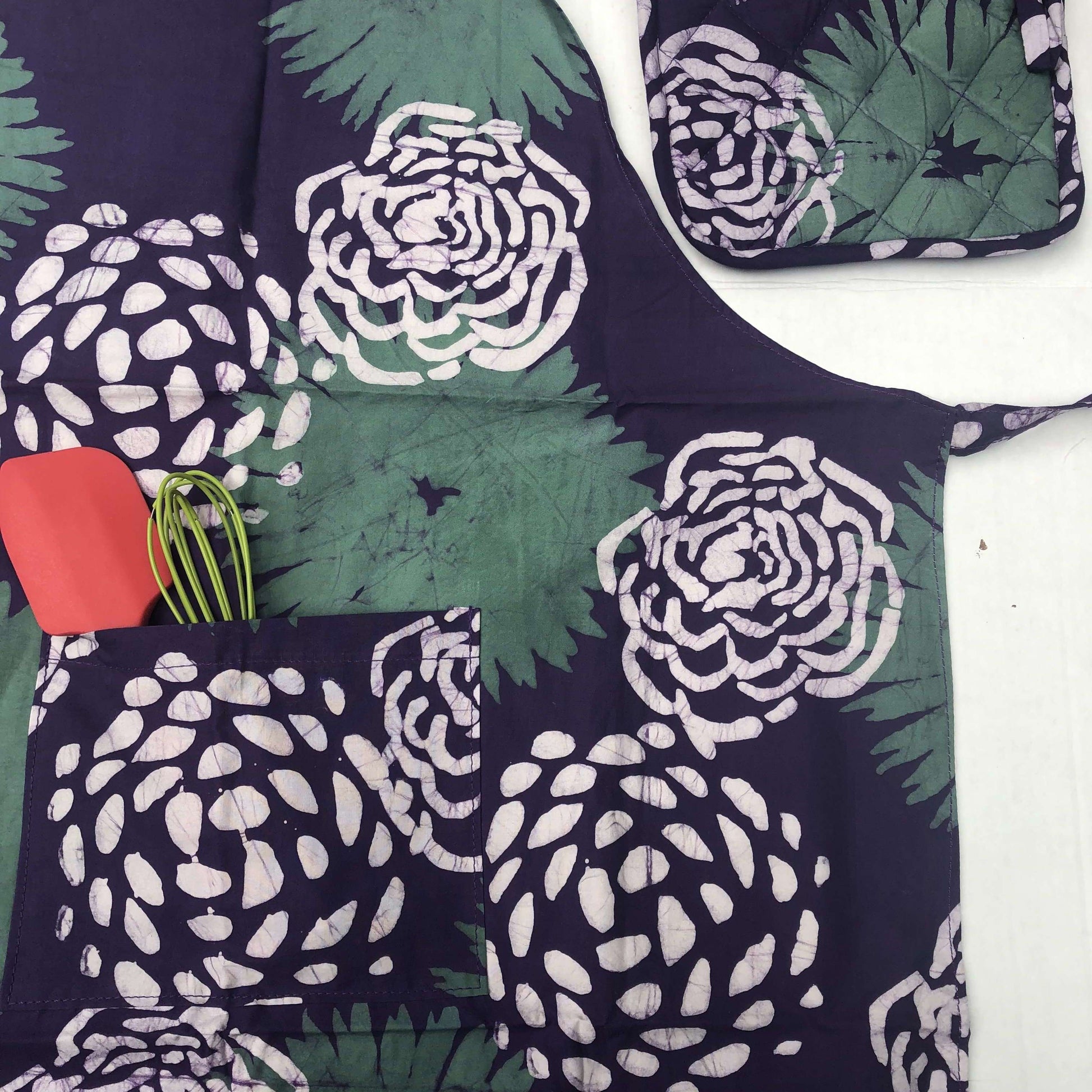 Fair Trade item. Certified organic cotton. The Mamas who designed, batiked, and sewed the aprons, lovingly signed their names.