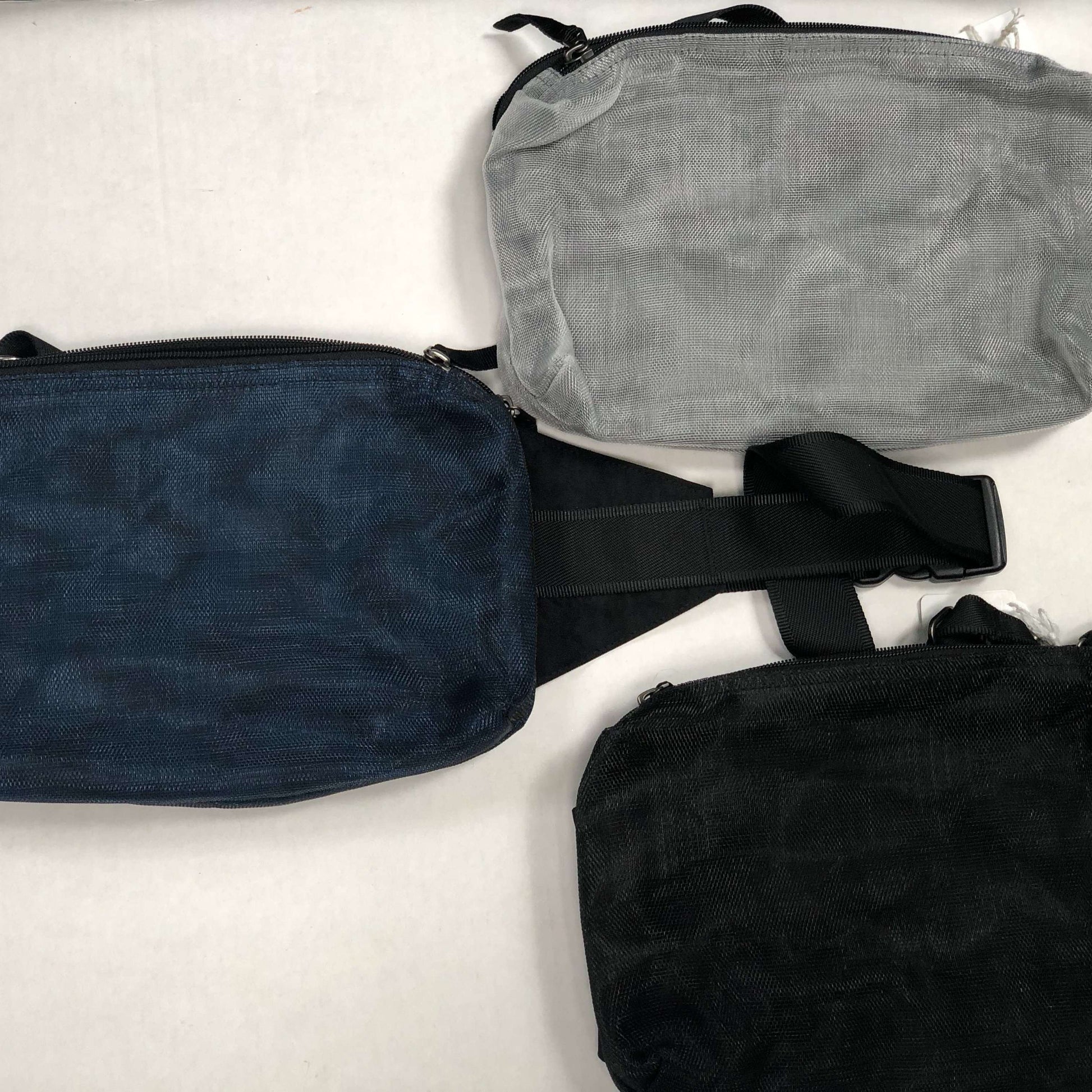 The stylish lightweight, repurposed fanny packs are in! Wear around your waist, sling over your shoulder or wear as a crossbody complete with a shoulder strap! This versatile bag has multiple zippers for storage and easy access.