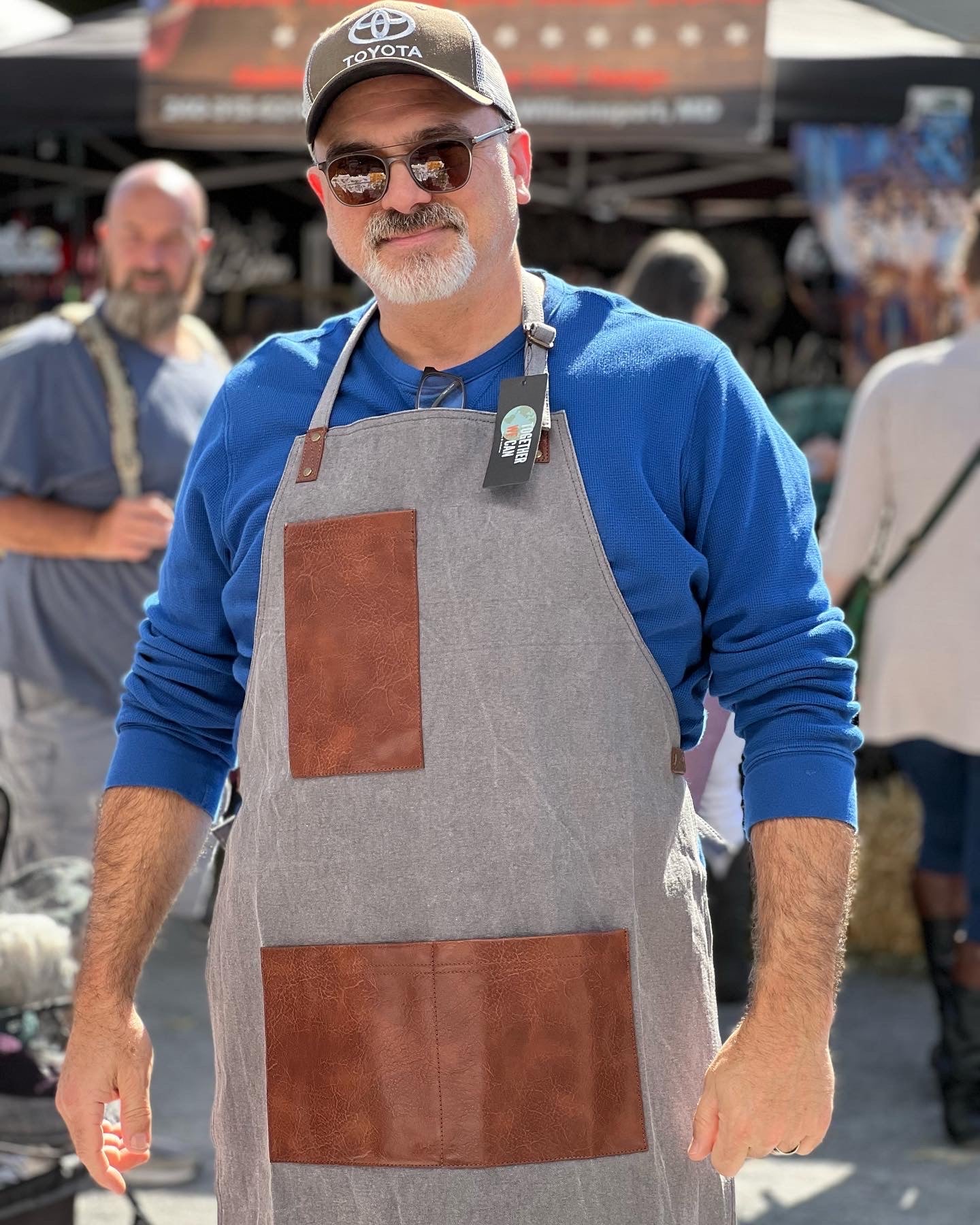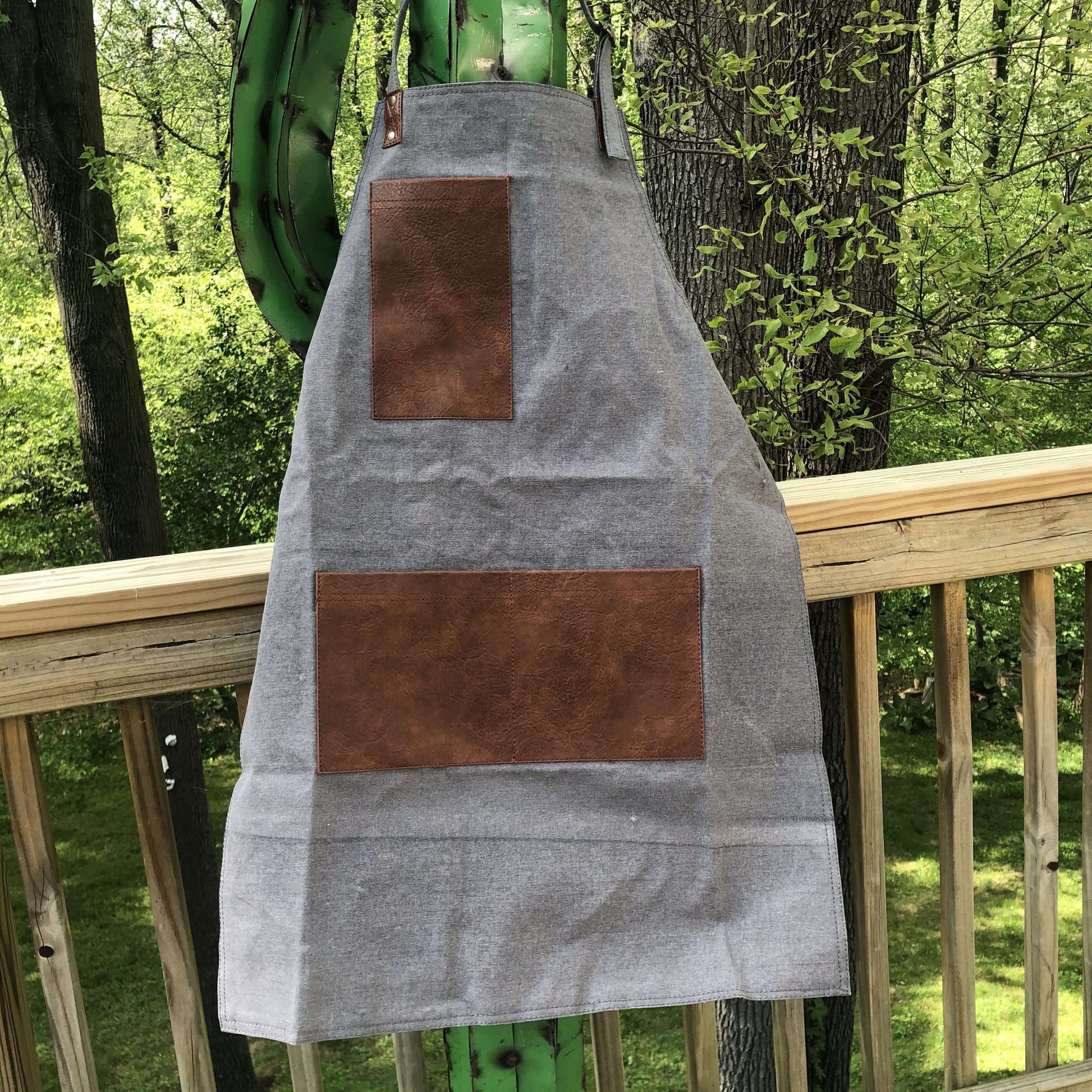 Great for shop and BBQ, these aprons are built to last and have an added protection of a faux leather front pocket. Durable but lightweight.