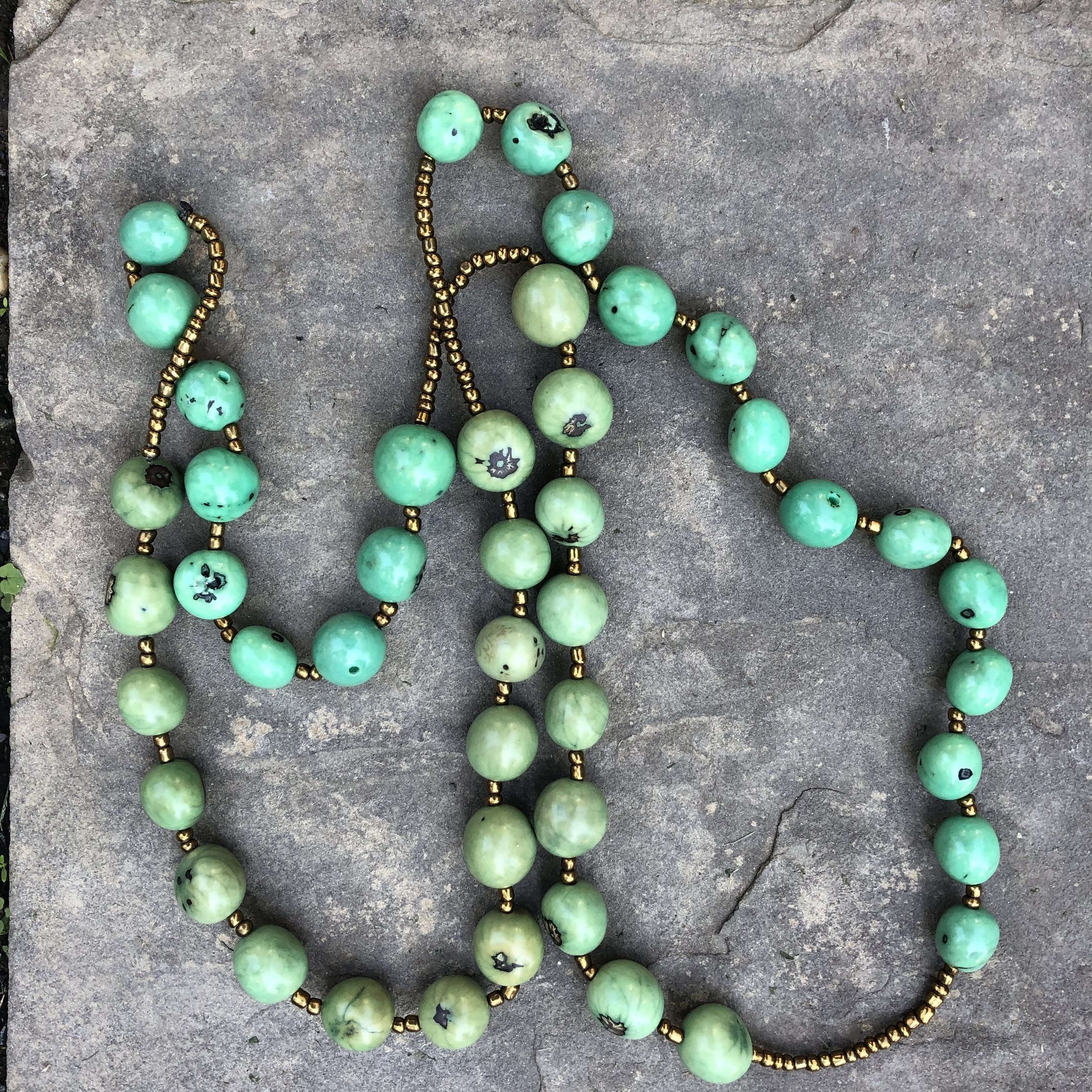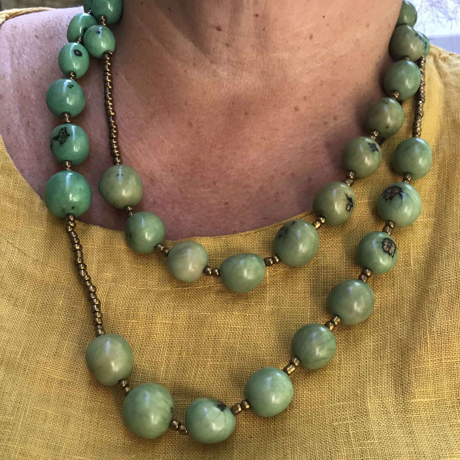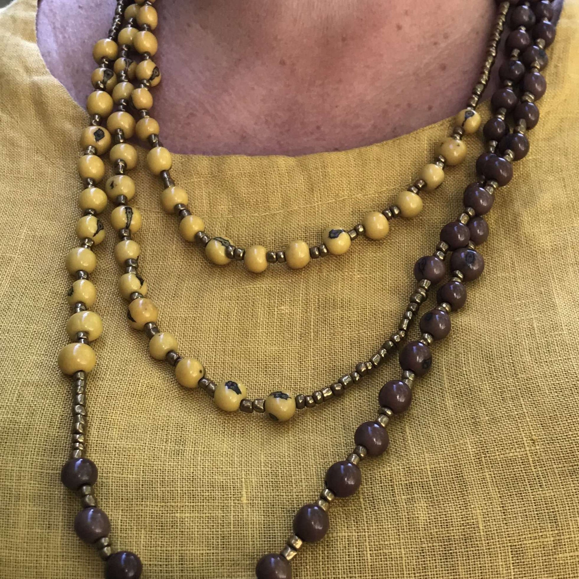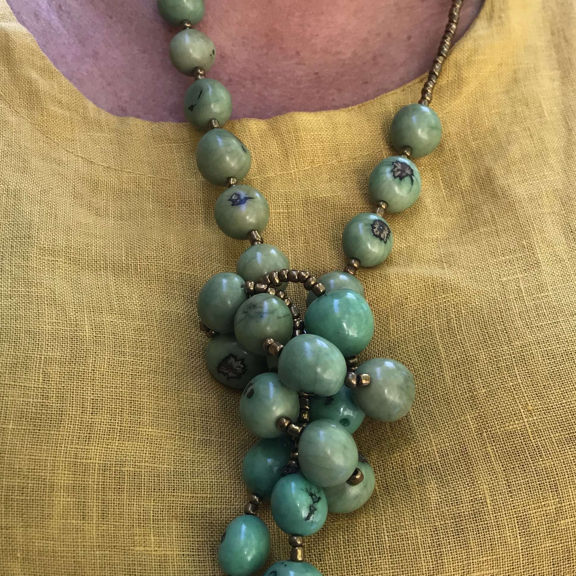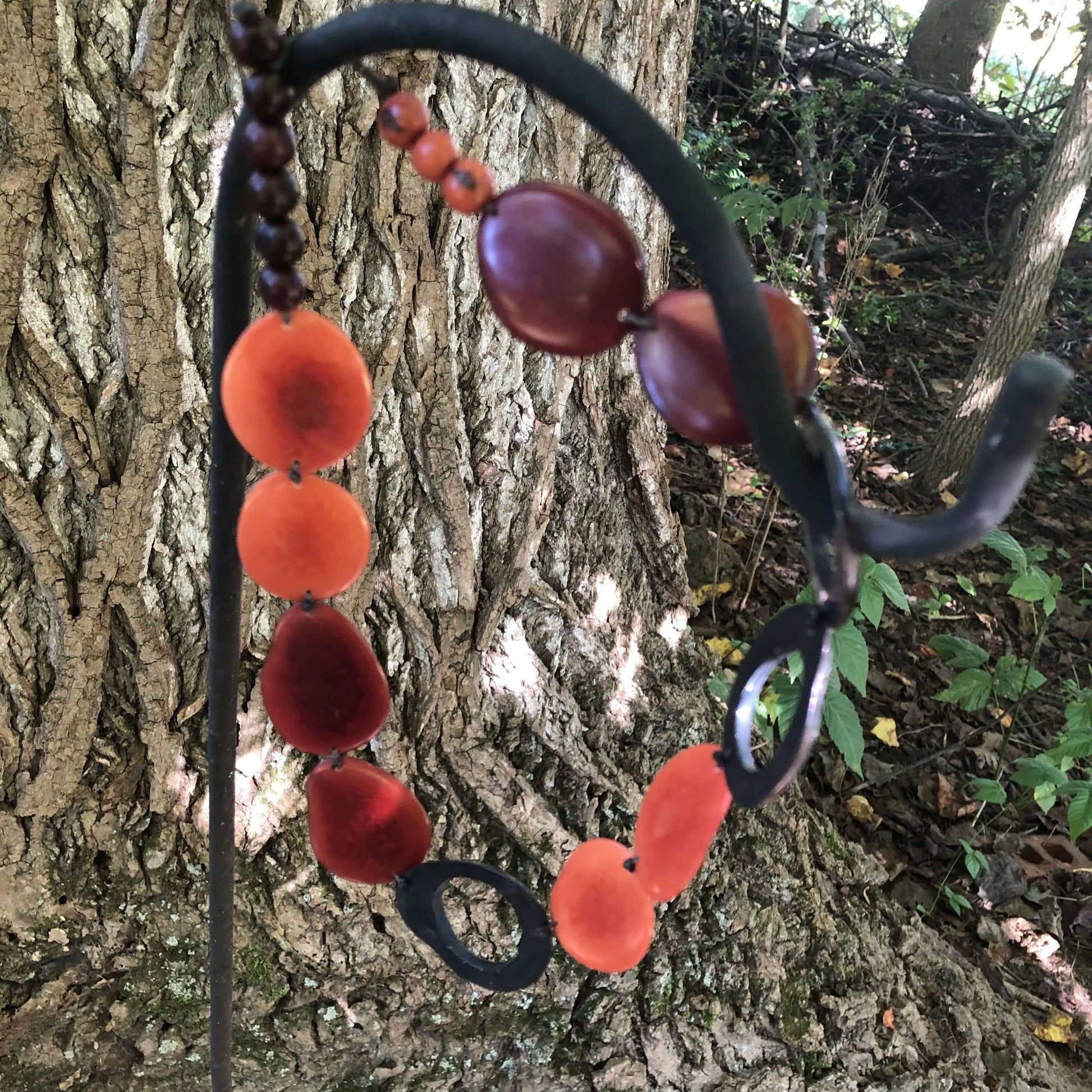 The Ventana Flirty Necklace (18"), Sunset and Lime, makes a striking statement with the colorful tagua beads. 18"